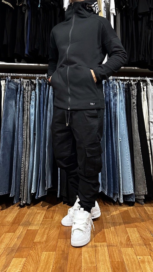 Jogger cargo negro elastizado
